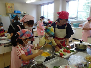8月25日(日)3・4年生の学級PTA活動がありました。親子で協力してひやむぎを作りました。豚しゃぶ、レタス、キュウリ、トマト、玉子、しそでトッピングしました。デザートは、ヨーグルトにグラノーラ、サクランボ、桃に苺のソース、ホイップクリームをかけ食べました。とてもおいしかったです。